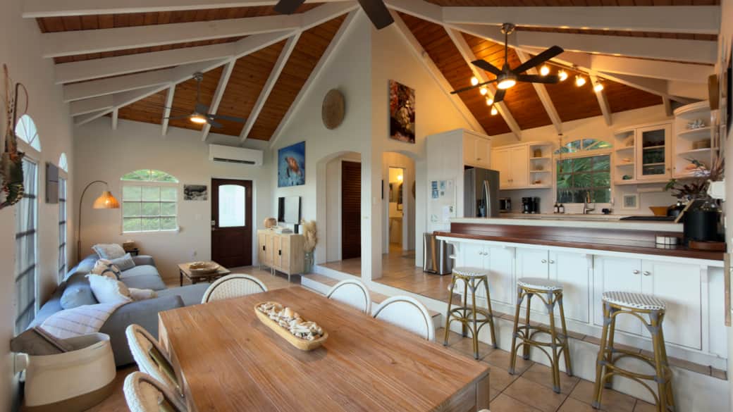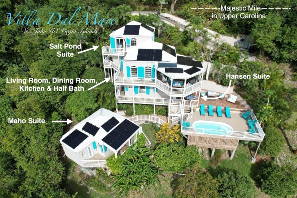 Welcome to your home by the sea! Villa Dal Mare is perfect for a family or group getaway. This island style villa offers gorgeous views overlooking Coral Bay with a spacious layout. Complete with all the amenities you need for a family friendly trip.