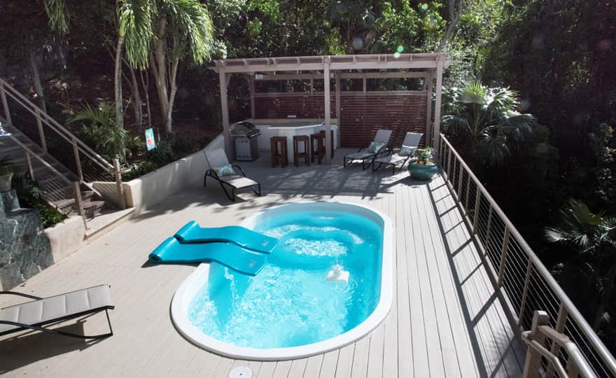 You will find privacy with individual suite style bedrooms as well as a variety of open indoor and outdoor spaces to play games, gather for conversation, dine, lounge poolside, practice yoga, or tuck in alone to read a book. Casa Del Palmas is nestled hillside in a lush and quiet neighborhood only ten minutes from Cruz Bay, providing convenient access to Cruz Bay’s shopping, water sports, groceries and restaurants. Beach towels, beach chairs, coolers, and pool toys are also available to use during your stay.