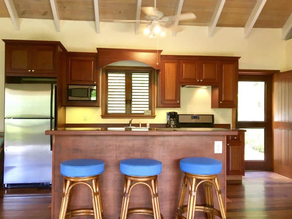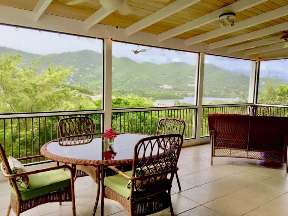 Bungalow Blue is set above the jungle canopy with amazing views of the serene Coral Bay Harbor. This newer, custom designed home sits in a private location, yet is walking distance to restaurants, shops, groceries, and  water activities such as kayaking and paddle-boarding.Â