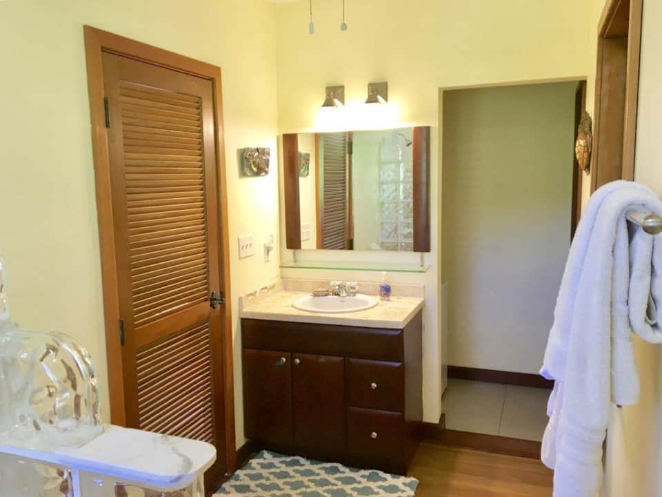 The open floor plan includes an up-to-date kitchen with stainless steel appliances a new Vitamix blender, a living room with flat-screen Smart TV with Blu-Ray DVD player, WiFi, Amazon Echo Show for additional entertainment and large doors leading onto the screened in porch. The bedroom features a Queen bed with a private entrance and A/C. In the living room you will find a cabinet-style Murphy bed with a Queen mattress. Please note, there is no A/C in the shared areas but there is direct access and breeze from the screened porch.
