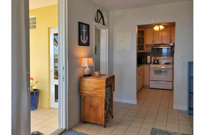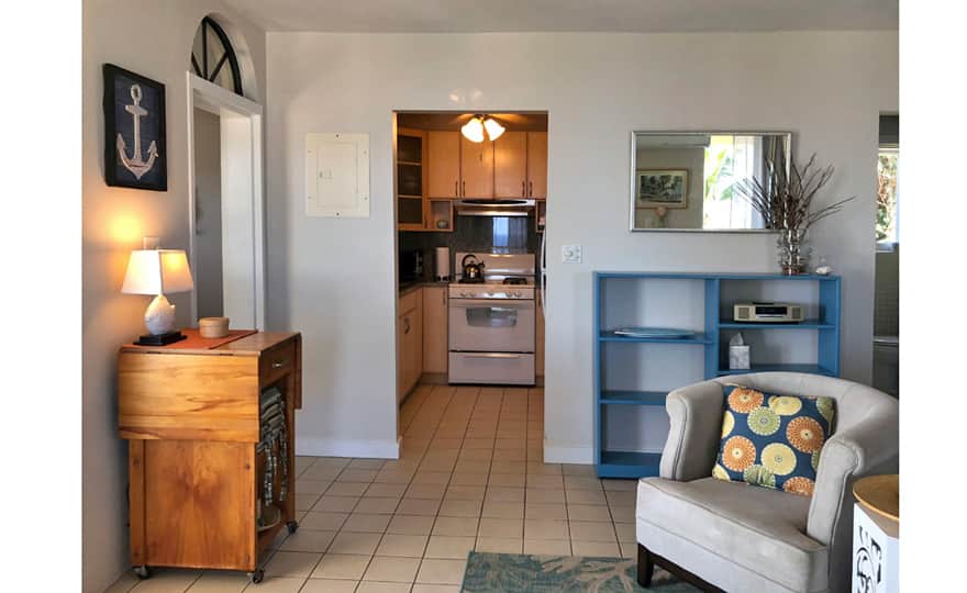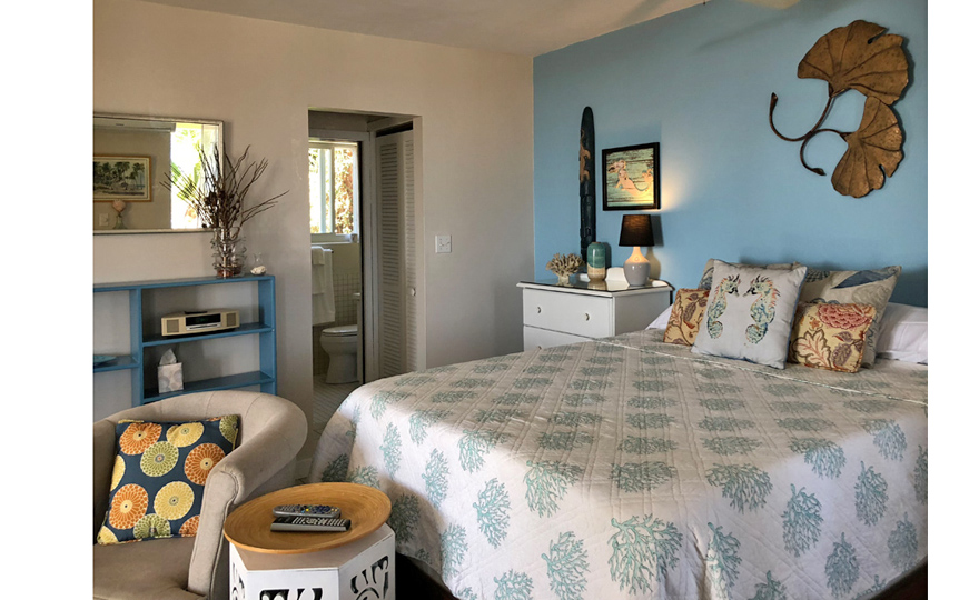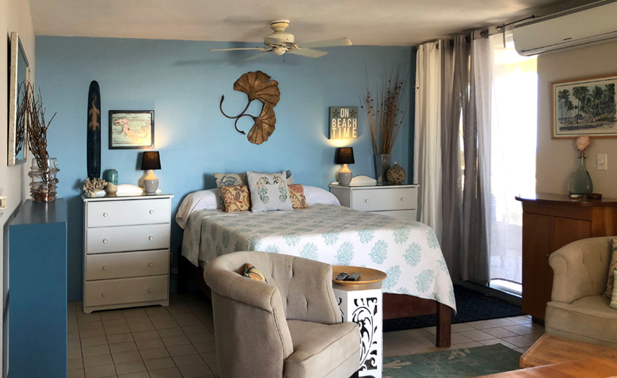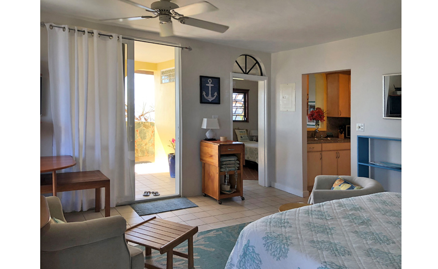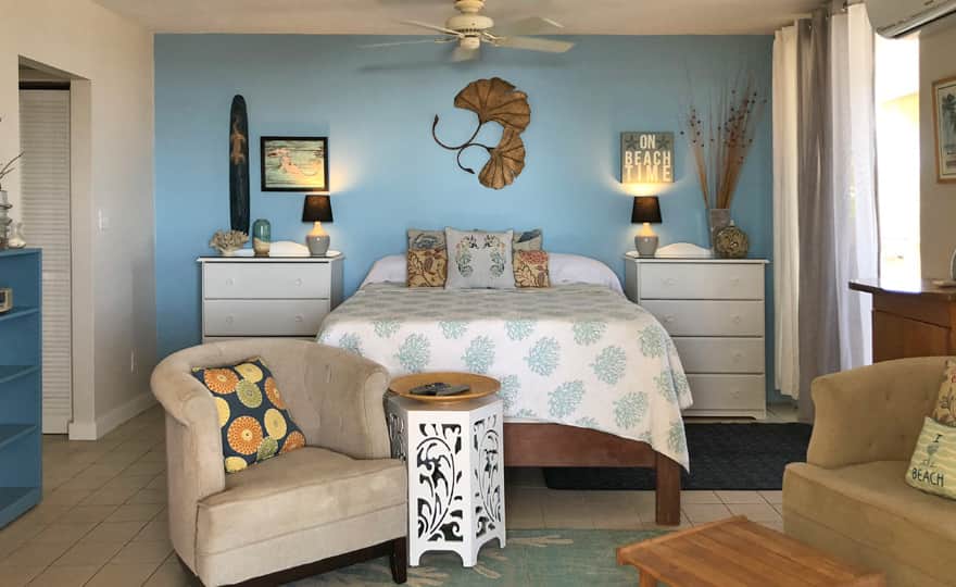 This studio condo has an open floor plan, with queen bed, full bath, siting area with Dish TV & WIFI, closet, fully equipped kitchen, and twin bed nook area for a 3rd guest. Beach towels, beach chairs, random assortment of snorkel gear, and cooler are also available to use during your stay.