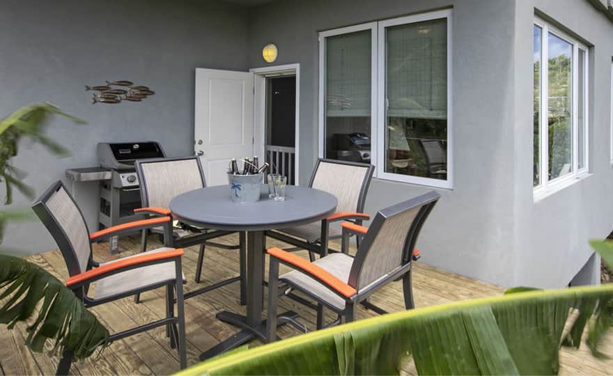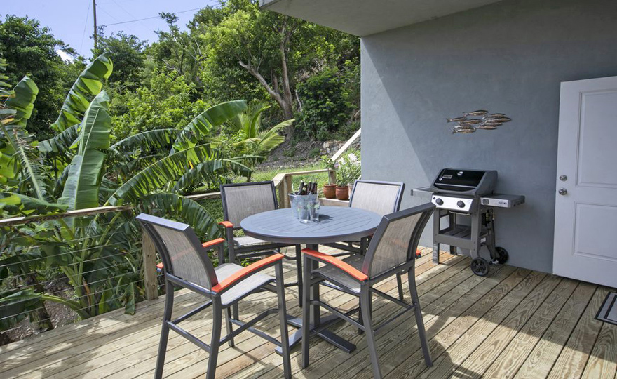 Come and enjoy the comfortable, partially covered patio with nearly constant tropical breezes while you sit by the banana trees. It is the perfect place to catch a Coral Bay sunrise while enjoying your morning coffee or dining al fresco after a relaxing day at the beach. The roomy apartment has one bedroom with a queen bed, a full bath, and a fully equipped kitchen. There is a large dining and living area which faces a wall of windows that open to an expansive view of the Carolina Valley and the historic ruins of the Carolina Estate. This mainly solar powered home is equipped with Tesla Powerwalls which ensure constant power even in the event of an electric outage. The apartment comes outfitted with AC in the bedroom, WiFi, TV with Dish Network, a large outdoor deck with grill, and a washer/dryer for guest use. Beach chairs, coolers, and beach towels are provided so you have everything you need for a day at the beach. If you enjoy hiking, there are many trails to enjoy that are very close by.